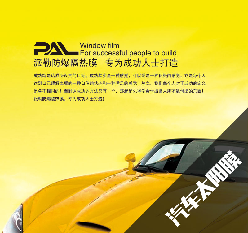 派勒致力在汽车膜领域,产品线涵盖漆面保护膜、太阳膜和车身改色膜,全方位满足车主们对爱车车身的保护及护理需求。所有产品采用美国先进加工生产技术,采用国际质量标准生产,欧洲的设计与制作工艺,确保每一款的产品都具有出色的保护和护理效果,派勒以过硬的使用品质,在行业和消费者中树立良好的口碑和形象。More......